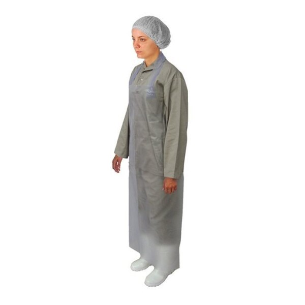 Avental de segurança confeccionado em filme de PVC (Plastico Tipo Vinil), sem componentes metálicos.