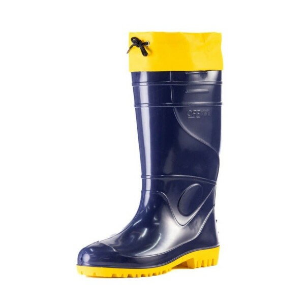 A Bota de PVC Aqua Azul e Amarela é totalmente impermeável e projetada para oferecer proteção avançada contra líquidos, resíduos sólidos e produtos químicos. Fabricada com composto polimérico de PVC, essa bota possui uma polaina com cadarço em PVC flexível, que impede a entrada de resíduos sólidos, garantindo máxima proteção em ambientes de trabalho exigentes.