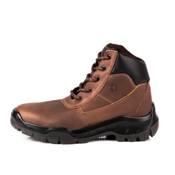 Bota para uso ocupacional com fechamento em cadarço e confeccionada em vaqueta graxo marrom. Forração interna na gáspea e forro do cano em nylon com excelente absorção de suor e solado poliuretano (PU) bidensidade e estabilizador de caminhada.