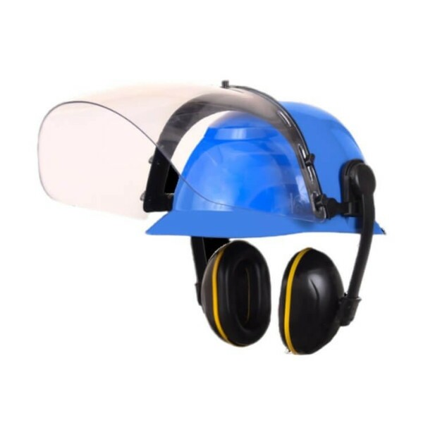 - Carneira fixada ao casco, regulagem por pino, suspensão, protetor facial em um suporte basculante e protetor auditivo tipo concha, constituído por dois abafadores de plástico apresentando almofadas de vedação e espuma no seu interior.