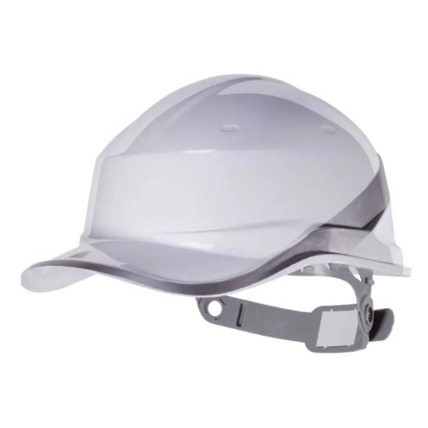 Capacete Classe A e B Cinza com Carneira de Catraca e Faixa Refletiva Baseball Diamond V - Delta Plus | CA - 39041 destaca-se por seu design exclusivo, elegante e inovador. Desenvolvido pela renomada marca DELTA PLUS, este capacete é confeccionado em ABS, garantindo alto brilho, durabilidade superior e isolamento elétrico de até 30 kV. Com uma faixa exclusiva para aumentar a visibilidade e uma aba frontal que oferece uma visão vertical ampliada, é ideal para trabalhos em altura.