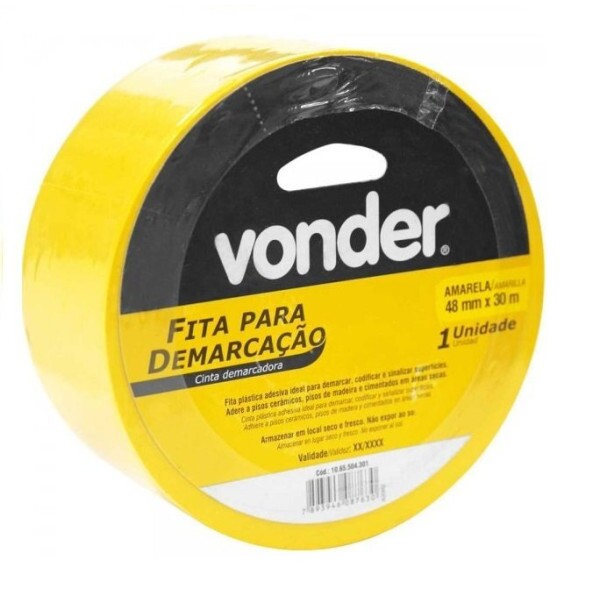 Fita adesiva de demarcação. Possui costado de PVC macio com polímero plástico, revestido com uma camada resistente de borracha adesiva. Indicada para demarcar e sinalizar superfícies/áreas de risco. Adere a pisos cerâmicos, de madeira e cimentados em áreas secas.