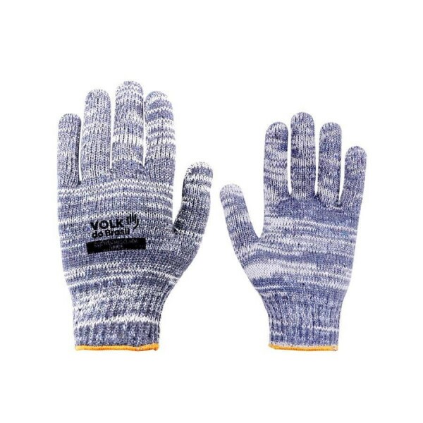 Luva de segurança confeccionada com fibras naturais e sintéticas, gauge 7, punho com inserção de fibras elásticas e acabamento em fibras sintéticas.