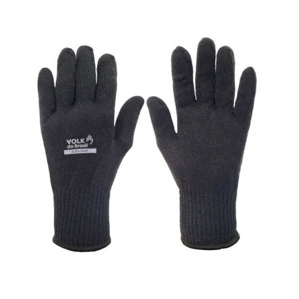 Luva de segurança confeccionada em fibras sintéticas (poliéster) e fibras naturais, punho com inserção de fibras elásticas, acabamento em fibras sintéticas
