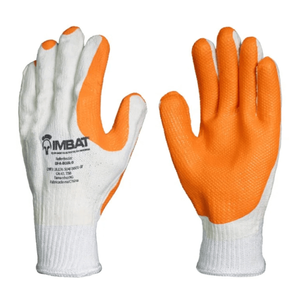 Desenvolvidas com algodão, material natural, macio e respirável, Luva Emborrachada Laranja LVABLVA - Imbat (12 Pares) | CA - 41758 proporciona conforto excepcional durante todo o dia de trabalho, mesmo em ambientes quentes. O tecido de algodão garante um ajuste perfeito às mãos, enquanto a camada de borracha vulcanizada na palma e dedos oferece proteção reforçada.