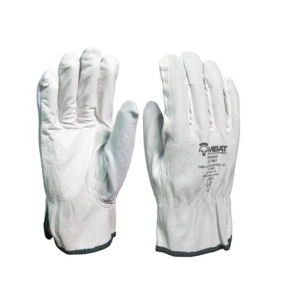 Luva de segurança confeccionada em vaqueta na palma, dorso em raspa e elástico no dorso para ajuste. Tipo petroleira.