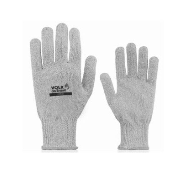 Luva de segurança confeccionada em fios sintéticos, punho com inserções de fibras elásticas e acabamento em fibras sintéticas.