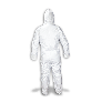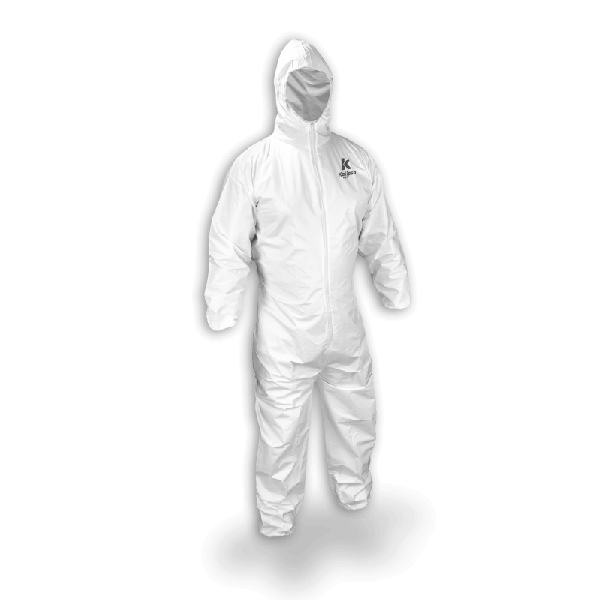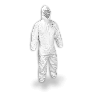 Macacão de segurança, confeccionado em tecido não tecido (TNT) de polipropileno com filme de polietileno microporoso. Tratamento antiestático. Capuz de duas peças com elástico. Fechamento frontal com zíper bidirecional, sem aba protetora, elástico na cintura, punhos e tornozelos. Testado e aprovado em conformidade, segundo a norma ISO: 16602 - Roupas de Proteção Contra Produtos Químicos TIPO 6 - Vestimenta de Proteção Química com Proteção Limitada Contra Líquidos Químicos.