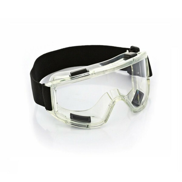 Óculos de segurança modelo ampla visão constituído de armação confeccionada em uma única peça de PVC flexível transparente com sistema de ventilação indireta composto por quatro válvulas, sendo duas na parte superior e duas na parte inferior da armação, visor de policarbonato incolor, tirante elástico para ajuste. O modelo cobre toda a região em torno dos olhos do usuário.