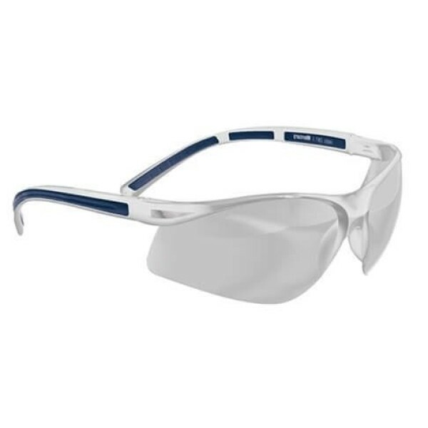 Óculos de segurança com lente de proteção em policarbonato com tratamento antirrisco, antiembaçante e UV, protetor nasal injetado do mesmo material e haste emborrachada.