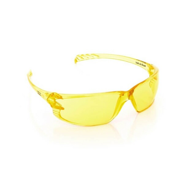 Óculos de segurança constituído de armação e visor confeccionados em uma única peça de policarbonato, com revestimento externo espelhado na cor prata (espelhado IN and OUT), meia proteção lateral e apoio nasal injetado do mesmo material. As hastes, do tipo espátula, são confeccionadas em uma única peça do mesmo material do visor fixadas à extremidade do visor por meio de encaixe de dois pinos plásticos.