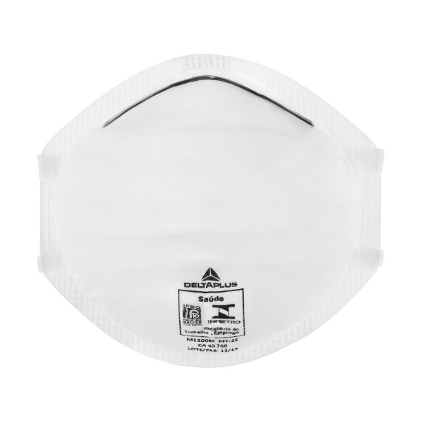 KIT 10 UN - Respirador semifacial descartável, classe PFF2 (s), modelo concha. Formado por feltro em poliéster, filtro com tratamento eletrostático, TNT na parte externa, clip nasal metálico e elásticos de poliéster com elastano. Oferece proteção contra poeiras, névoas não oleosas e fumos.
