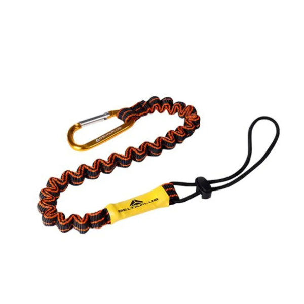 Porta ferramentas em poliamida com mosquetão em alumínio, capacidade máxima de 4 kg. Comprimento estendido: 1 m.