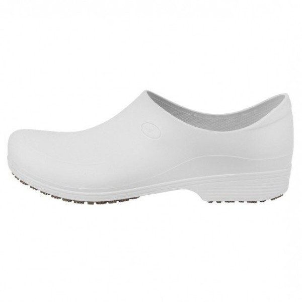 - Cabedal 100% impermeável. Oferece proteção aos pés em ambientes úmidos. Fácil higienização. Lavou, secou.